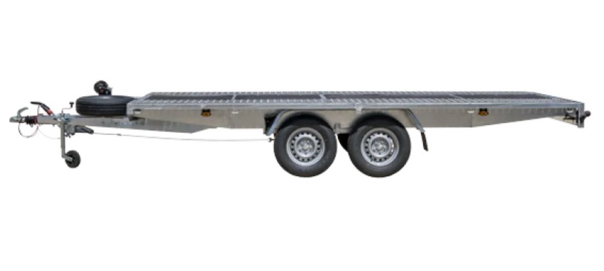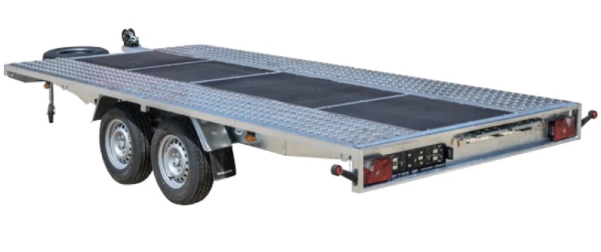 Remorcă universală, remorcă cu suprafață plană de încărcare destinată transportului: mașini, quad-uri, motociclete, mașini de construcții sau mici tractoare de grădină. Posibilitatea de a regla lățimea rampelor de încărcare permite o încărcare convenabilă. Bazat pe componente de la companii renumite AL-KO sau KNOTT. Poate avea două sau trei axe. Roți de 14″, 13″ și 10″. Produs cu șină laterală (model S-vechi) sau fără șină laterală (model N-nou – doar N de la o lungime de 5 m). NOU – versiunea B – Cel mai bun model– rampa profilata cu balustrada integrata, inaltime de 2 cm. Barele laterale ale remorcii în versiunea B pot fi acoperite (contra cost) cu o bandă reflectorizantă galbenă 3M. Banda reflectorizanta 3M poate fi aplicata si pe fasciculul din fata – alb si pe cel din spate – rosu. Cel mai bun model este disponibil pentru fiecare lungime de remorcă. Remorca poate fi echipata cu un cadru si o prelata precum si cu laterale din aluminiu cu inaltimea de 40 cm. Dotat cu: rampe din otel zincat 2,5 m, roata de rezerva, cale de roata, roata suport si troliu DRAGON.