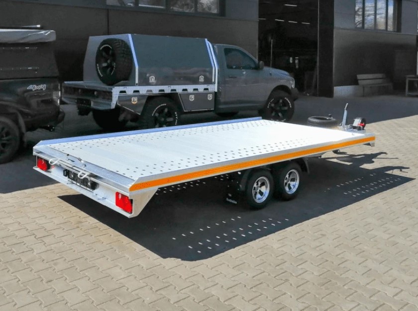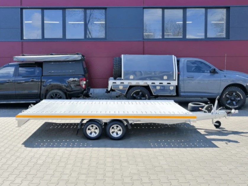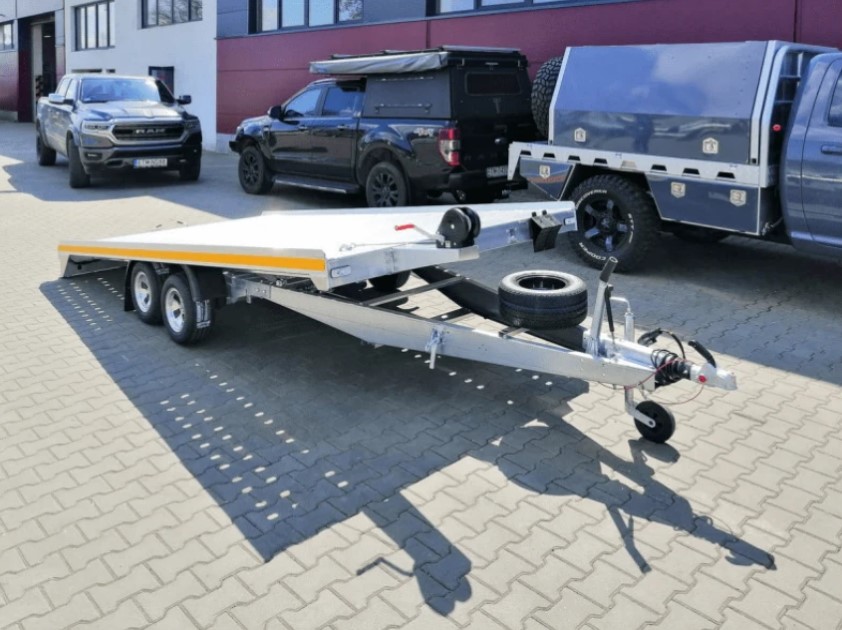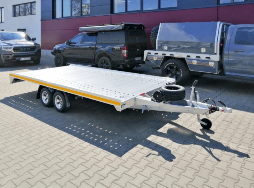 ALU LED PROBE in varianta din aluminiu (cadru si bara de tractiune din otel galvanizat la cald) cu iluminare Horpol LED, cu roti ALU de 10″. Remorca destinata transportului autoturismelor. Are un sistem de platformă de încărcare basculabilă cu amortizoare cu gaz, care permite o încărcare foarte convenabilă – unghi de apropiere de 8,5 °. Echipat cu troliu DRAGON. Spațiul de încărcare de 4,0 x 2,0 m și 4,5 x 2,0 m este umplut cu panouri din aluminiu cu deschideri LOHR. GVM: 2500 kg. Remorca este echipata cu rampe din aluminiu de 1,8 x 0,35 m. Roti din aluminiu de 10″ amplasate sub suprafata de incarcare permit sa coboare centrul de greutate, ceea ce are ca rezultat conducerea confortabila si stabila a remorcii. Este disponibil și într-o versiune din oțel ca PROBE II.